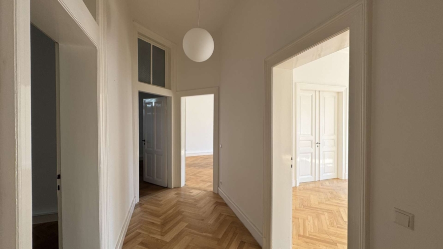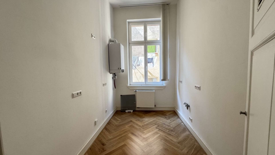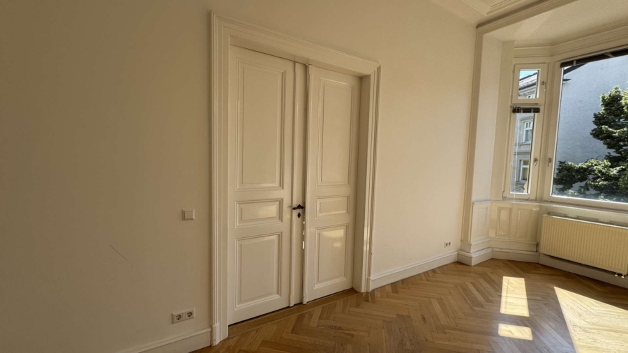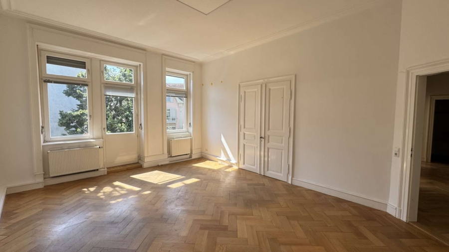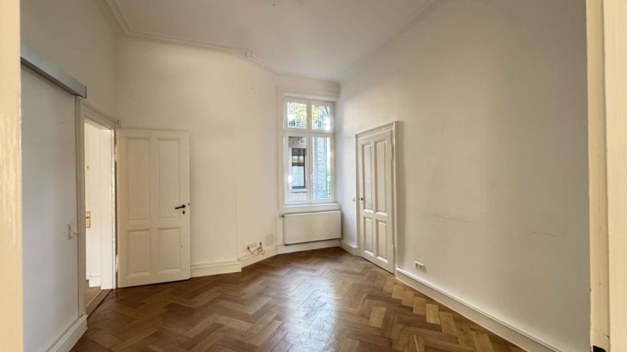 Die attraktive Gewerbeetage im 2. Obergeschoss dieses repräsentativen Gründerzeithauses präsentiert sich als ideale Büro- oder Praxisfläche im Herzen der Stadt. Die gesamte Etage umfasst etwa 213 m² und setzt sich aus zwei zusammengeführten Einheiten zusammen, die auf Wunsch auch wieder getrennt genutzt werden können. Großzügige Raumhöhen, klassische Parkettböden und ein eindrucksvoller Erker verleihen den Räumen ein elegantes, stilvolles Ambiente. Insgesamt stehen acht vielseitig nutzbare Zimmer zur Verfügung, ergänzt durch eine Küche, zwei WCs und ein separates Bad. Zwei Balkone mit Blick in den ruhigen Innenhof sorgen für angenehme Aufenthaltsqualität. Die Fläche verfügt über einen praktischen Empfangsbereich, professionelle EDV-Infrastruktur sowie einen bequemen Aufzug, der einen barrierearmen Zugang ermöglicht. Die Einheit eignet sich hervorragend für anspruchsvolle Büro-, Praxis- oder Beratungsnutzungen, die eine repräsentative Adresse und hochwertige Arbeitsumgebung schätzen.