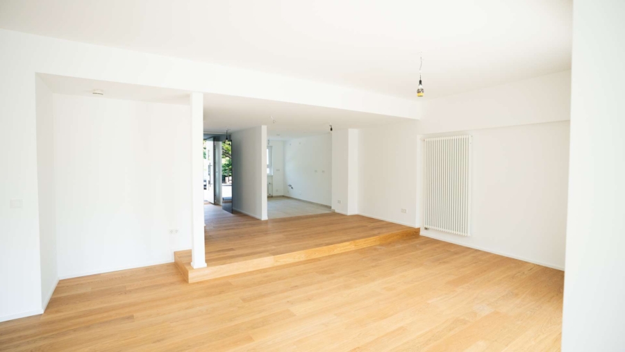 Im Gartengeschoss befindet sich eine ca. 55 m² große Einliegerwohnung, die wahlweise separat genutzt oder über eine interne Verbindung in das Haupthaus integriert werden kann. Zusätzlich stehen hier ein weiteres Zimmer sowie ein Duschbad zur Verfügung – perfekt für Gäste oder als Homeoffice.