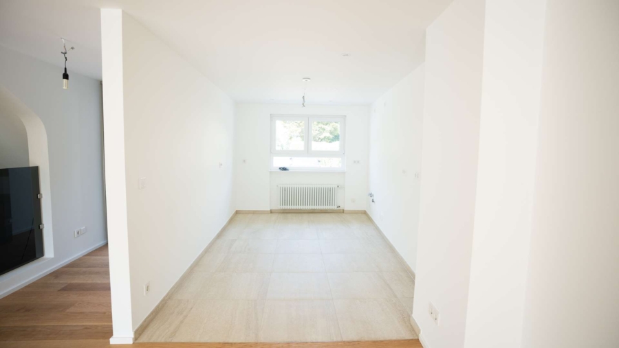 Die Sanierungsarbeiten wurden mit höchstem Anspruch an Qualität und Nachhaltigkeit durchgeführt. So erhielt die Immobilie neue 3-fach verglaste Fensterelemente mit elektrischen Rollläden, Echtholzmassivdielen im gesamten Haus, eine komplett erneuerte Elektrik, neue Sanitärbereiche, eine Neueindeckung und Isolierung des Daches mit anthrazitfarbenen Tonziegeln sowie eine hochwertige Haustür – auch in der Einliegerwohnung. Darüber hinaus wurde die Fassade mit Vollwärmeschutz versehen, die Garage mit elektrischem Torantrieb neu angebaut und die Außenanlagen neu gestaltet.