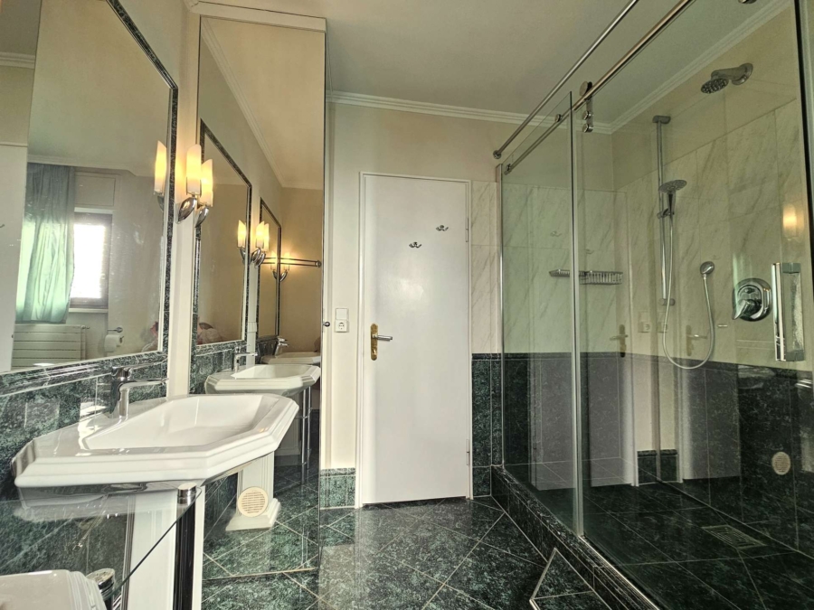 Die einladenden Bäder wurden vor wenigen Jahren modernisiert und u. a. mit großzügigen XXL-Duschen nach amerikanischem Vorbild ausgestattet. Eine hochwertige Einbauküche in Landhausoptik fügt sich harmonisch in den Wohnbereich ein und lädt zu geselligen Kochabenden ein.