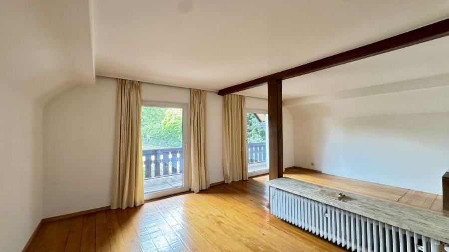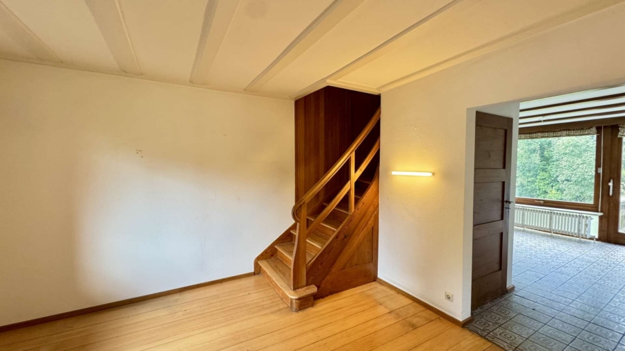 Das Einfamilienhaus aus dem Jahr 1930 wurde in klassischer Fachwerkbauweise errichtet und befindet sich auf einem großzügigen Grundstück von rund 811 m² in der begehrten Merkurseite Baden-Badens. Die Immobilie bietet eine Wohnfläche von etwa 131 m², die sich auf Keller, Erd- und Obergeschoss sowie einen Spitzboden verteilt. Durch die Hanglage ist ein Teil des Kellers traditionell unterirdisch nutzbar, während andere Bereiche ebenerdig zugänglich sind. Der bestehende Baukörper befindet sich in einem altersgerechten Zustand und eröffnet damit zwei Perspektiven: Zum einen bietet er eine solide Grundlage für eine individuelle Sanierung, zum anderen kann ein Abbruch in Erwägung gezogen werden.