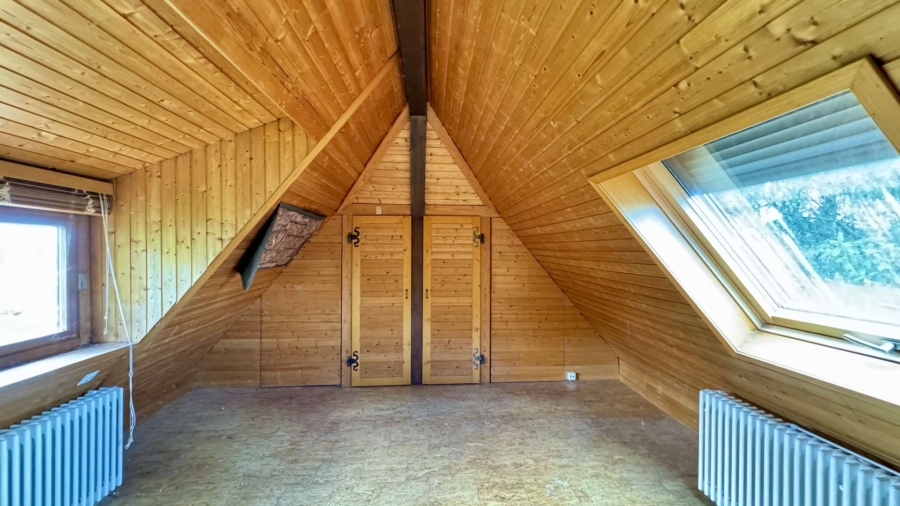 Die Immobilie verfügt über eine klassische Grundausstattung, die überwiegend aus den 1960er- und 1970er-Jahren stammt. Als jüngeres Gewerk ist die Gasheizung zu nennen, eine Buderus Logano Plus Gastherme aus dem Jahr 2014, ergänzt durch einen Warmwasserspeicher derselben Marke mit einem Volumen von 158 Litern. Die Bäder sind stilistisch ebenfalls dieser Zeit zuzuordnen, was den Charakter des Hauses unterstreicht, gleichzeitig jedoch Modernisierungsbedarf aufzeigt. Wasserleitungen aus Blei sind nach aktuellem Stand nicht mehr vorhanden, die vorhandenen Leitungen weisen jedoch ein Alter von mehr als 30 Jahren auf. Insgesamt bietet die Ausstattung eine solide Basis für individuelle Modernisierungen und eine zeitgemäße Anpassung.