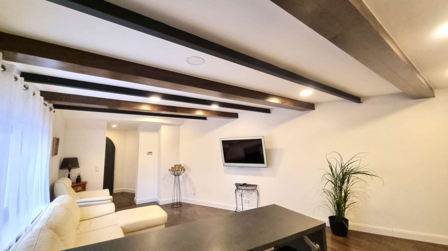 Beim Betreten des Hauses empfängt Sie ein großzügiger Wohn- und Essbereich, der durch eine helle und freundliche Gestaltung überzeugt. Die offene Einbauküche in Weiß mit vorgelagerter Esstheke fügt sich harmonisch ein und bietet ausreichend Platz zum Kochen und Genießen. Moderne Downlights im gesamten Haus unterstreichen den zeitgemäßen Charakter.