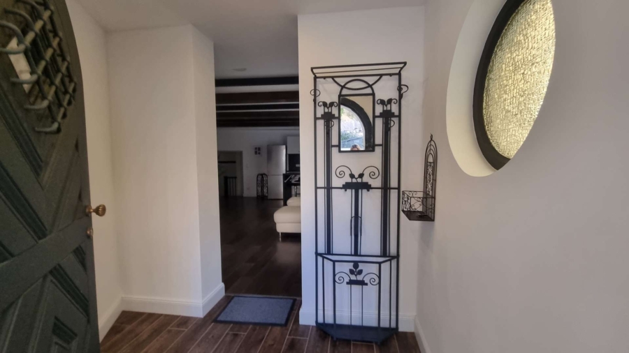 Die zum Haus gehörende Garage mit elektrisch betriebenem Tor bietet Platz für einen PKW und ist direkt mit der Immobilie verbunden. Eine kleine, von dekorativen Eisengittern eingefasste Terrasse verleiht dem Objekt eine mediterrane Atmosphäre und lädt zum entspannten Aufenthalt im Freien ein.