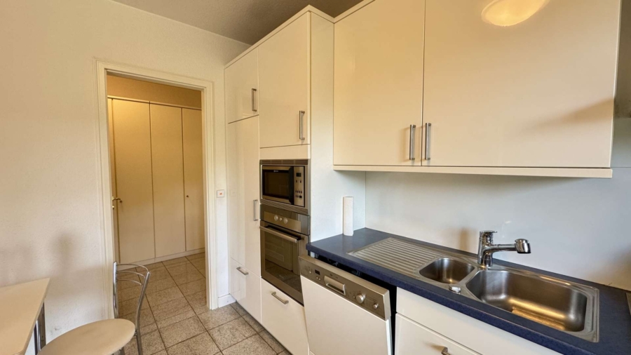 Die Wohnung verfügt über eine Einbauküche inklusive Elektrogeräten sowie maßgefertigte Einbauschränke, die ebenso wie die Küche bereits im Kaufpreis enthalten sind. Das helle Tageslichtbad mit Wanne und Dusche sowie das separate Gäste-WC sind mit edlen Natursteinböden ausgestattet.