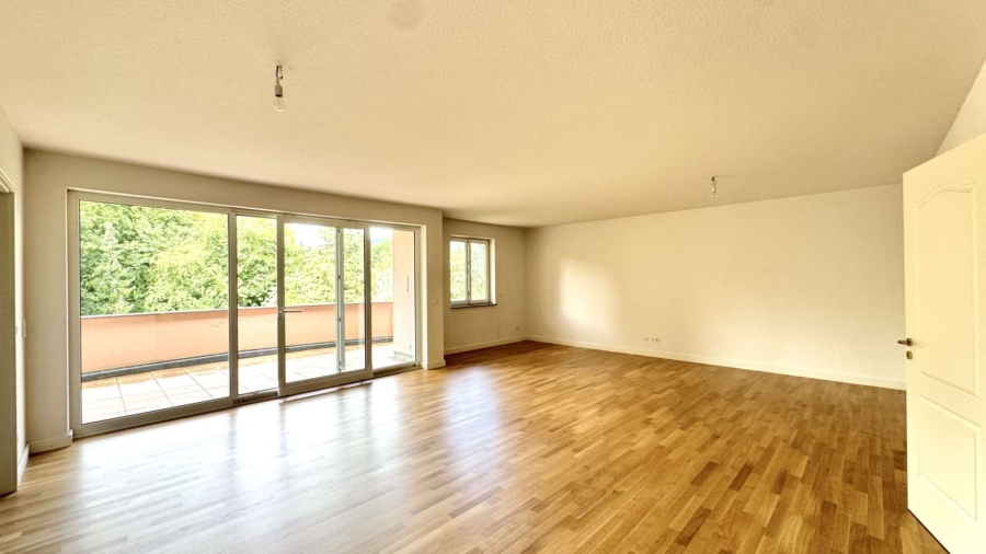 Das großzügige Penthouse im 2. Obergeschoss überzeugt mit einem perfekt durchdachten Grundriss und lichtdurchfluteten Wohnbereichen. Bodentiefe Fensterfronten eröffnen einen unverbaubaren Blick in den angrenzenden, parkähnlichen Garten und schaffen ein einzigartiges Wohnambiente. Auf ca. 150 m² Wohnfläche bietet diese Wohnung ein Höchstmaß an Komfort und Privatsphäre.