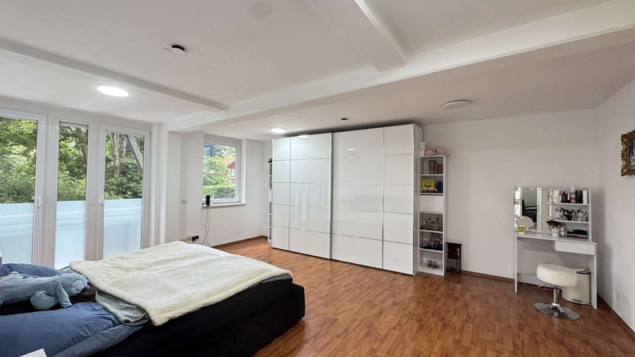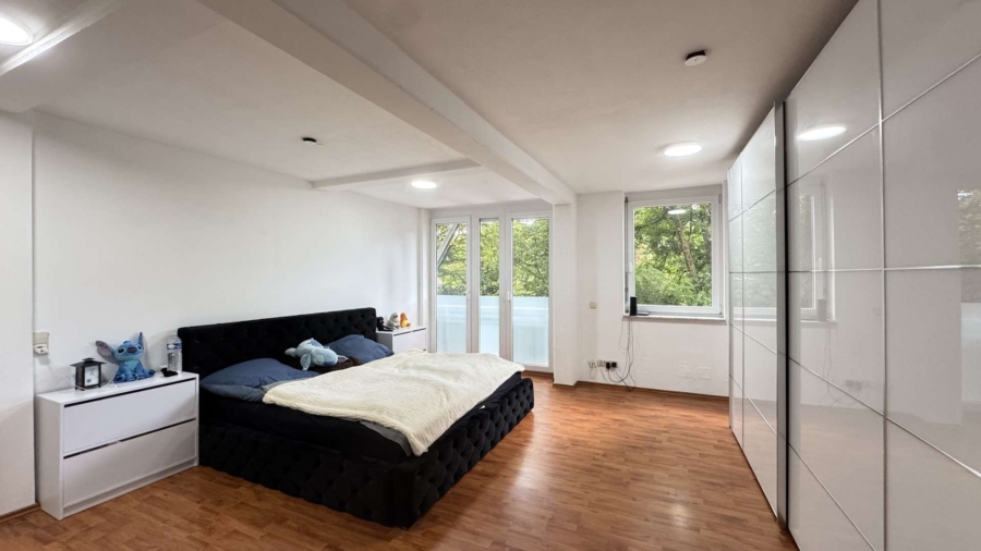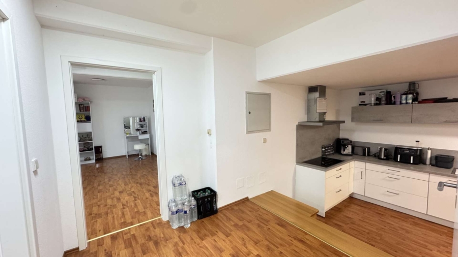 Die Wohnung befindet sich im 1. Obergeschoss eines im Jahr 2005 erbauten Mehrfamilienhauses in moderner Bauweise. Das gepflegte Gebäude verfügt über einen Aufzug, der direkt in die Wohnebene führt. Auf rund 106 Quadratmetern Wohnfläche bietet die Einheit großzügig geschnittene und helle Räume, die durch bodentiefe Fenster optimal belichtet sind. Der offen gestaltete Wohn- und Essbereich mit integrierter Einbauküche bildet das Herzstück der Wohnung und schafft ein angenehmes Raumgefühl. Die Wohnung ist aktuell vermietet und erzielt eine monatliche Kaltmiete von 920 Euro zuzüglich 150 Euro Nebenkostenvorauszahlung. Für den dazugehörigen Garagenstellplatz werden weitere 75 Euro monatlich entrichtet. Damit bietet das Objekt eine solide Einnahmebasis und eignet sich gleichermaßen als Kapitalanlage wie auch zur Eigennutzung.