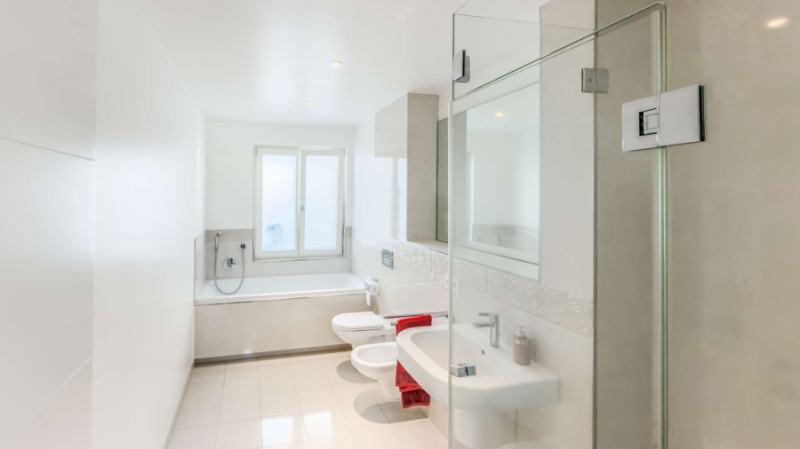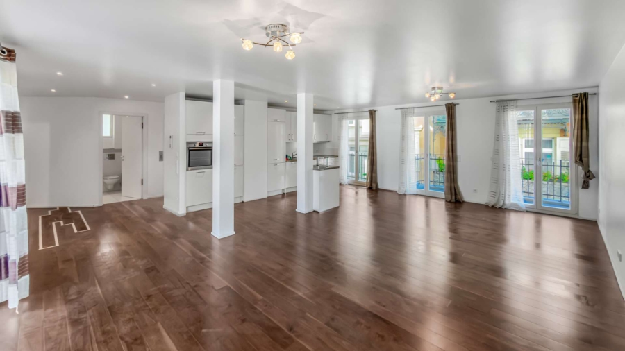 Die Wohnung erstreckt sich über eine Wohnfläche von ca. 106 m² und überzeugt durch eine äusserst durchdachte Raumaufteilung: Drei geräumige, lichtdurchflutete Wohnräume bieten großzügigen Komfort für Wohnen, Arbeiten oder Gäste. Ein stilvoll gestaltetes Hauptbad mit Dusche und Badewanne sowie ein zusätzliches modernes Gästebad mit Dusche lassen keine Wünsche offen. Die Ausstattung unterstreicht den hochwertigen Anspruch: Bodentiefe Fenster in allen Räumen sorgen für hervorragende Belichtung und einen direkten Bezug zur Umgebung. Eine Fußbodenheizung garantiert angenehme Wärme und ein gleichmässiges Raumklima. Der direkte Aufzug führt Sie bequem und barrierearm in Ihre Wohnung – ohne Umwege über Flure oder Treppen. Eine gepflegte Einbauküche, die beim Eigentümer verbleiben kann, rundet das Gesamtpaket ab. Abgerundet wird das Angebot durch einen im Kaufpreis enthaltenen Tiefgaragen­stellplatz sowie einen privaten Kellerraum, der zusätzlichen Stauraum bietet.