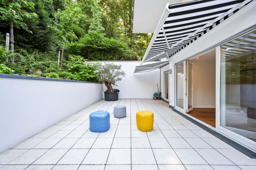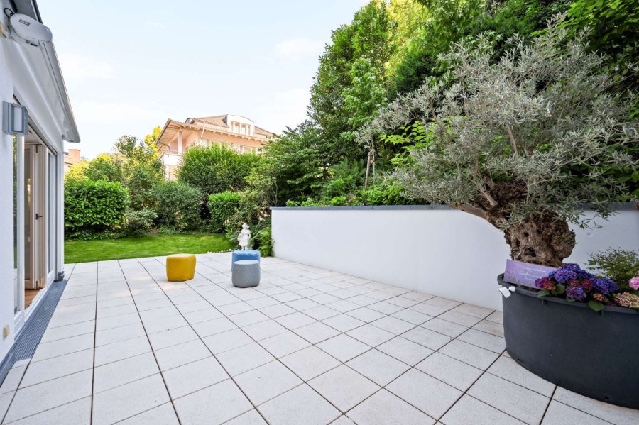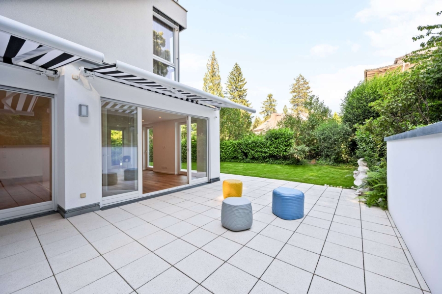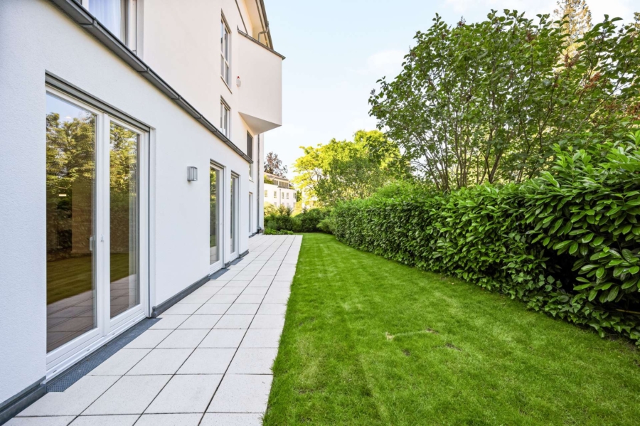 Besonders attraktiv wird die Wohnung durch das Sondernutzungsrecht am Gartenbereich von rund 64 m² sowie die weitläufige Terrassenfläche, die allen Räumen direkt angeschlossen ist und ein unvergleichliches Wohngefühl im Grünen ermöglicht.